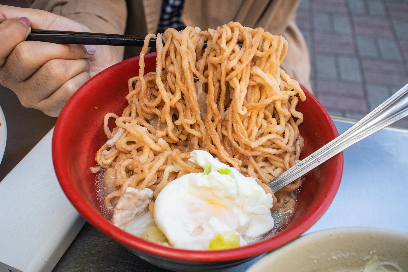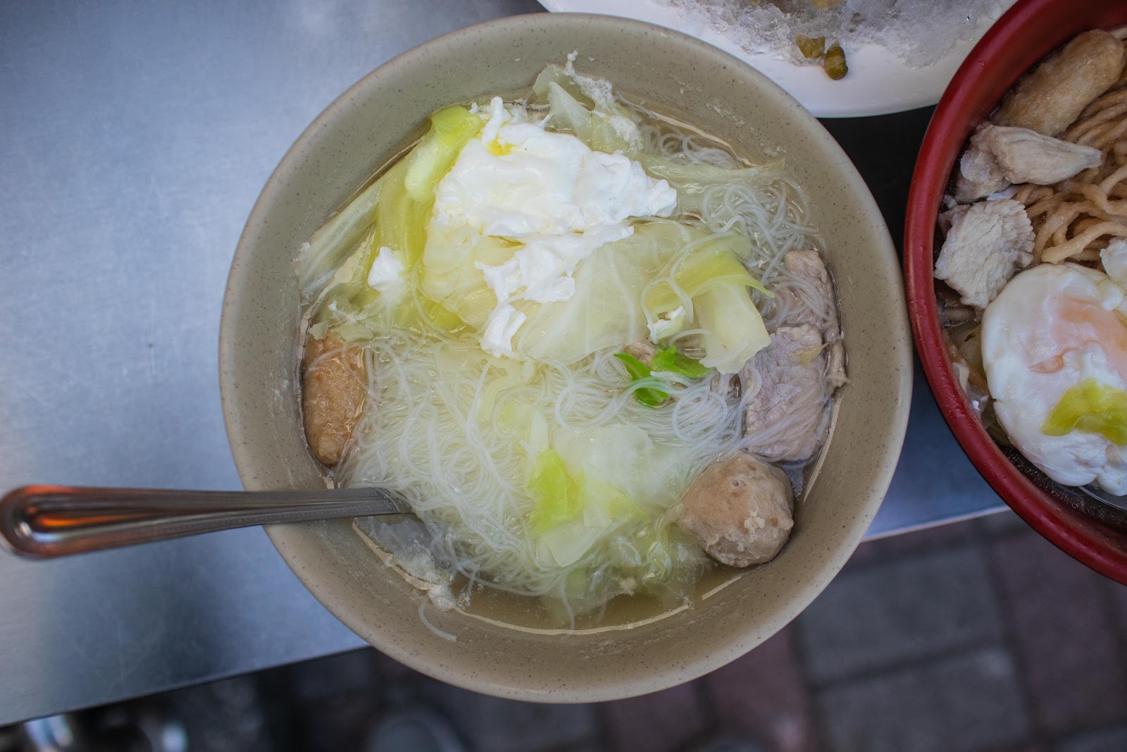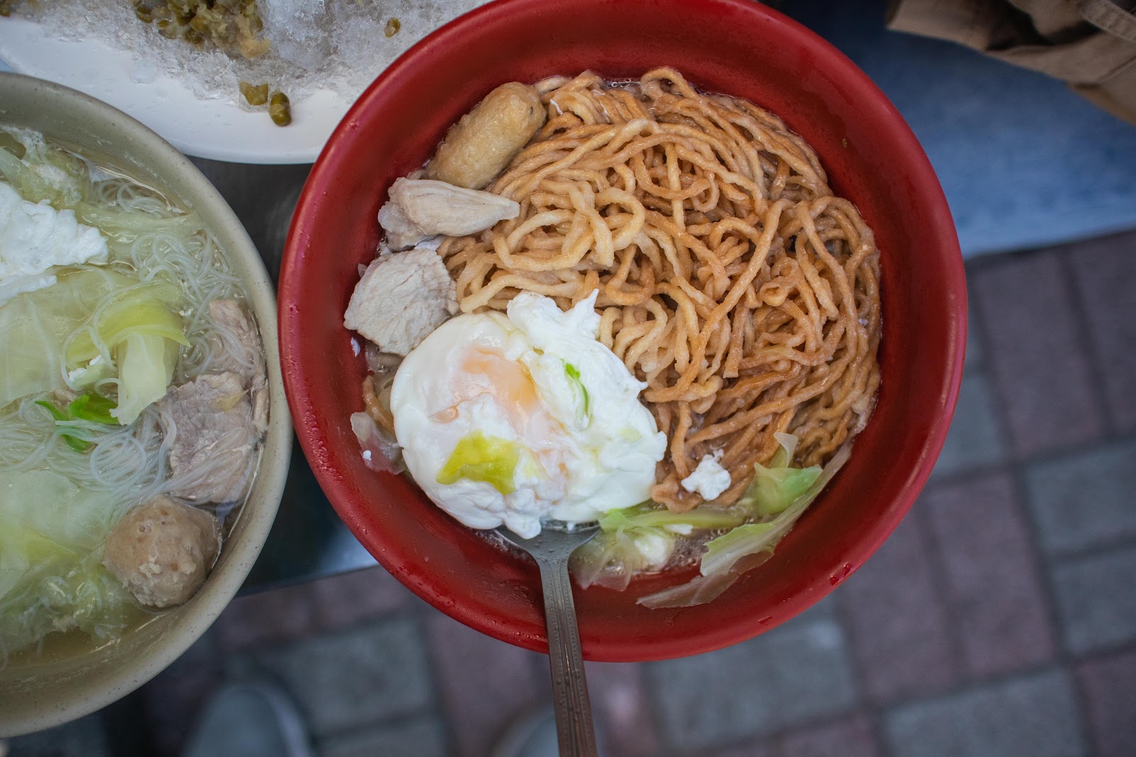 除了意麵、高麗菜、半熟蛋,還有貢丸、黑輪等配料,相較於其他店稍嫌空虛一些,湯頭微鹹帶一點鮮香氣,比起小時候吃的感覺少了一些味道,沒有從前驚為天人的感覺,不知道是期待太高還是從前的情感太難以忘懷。