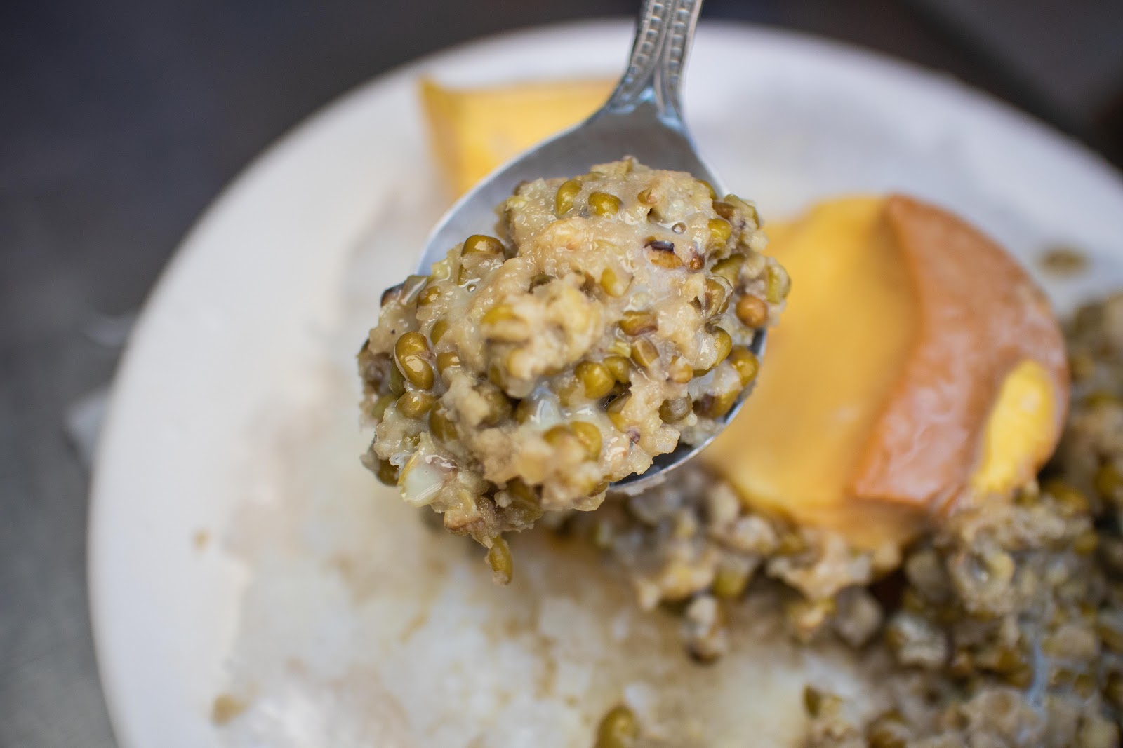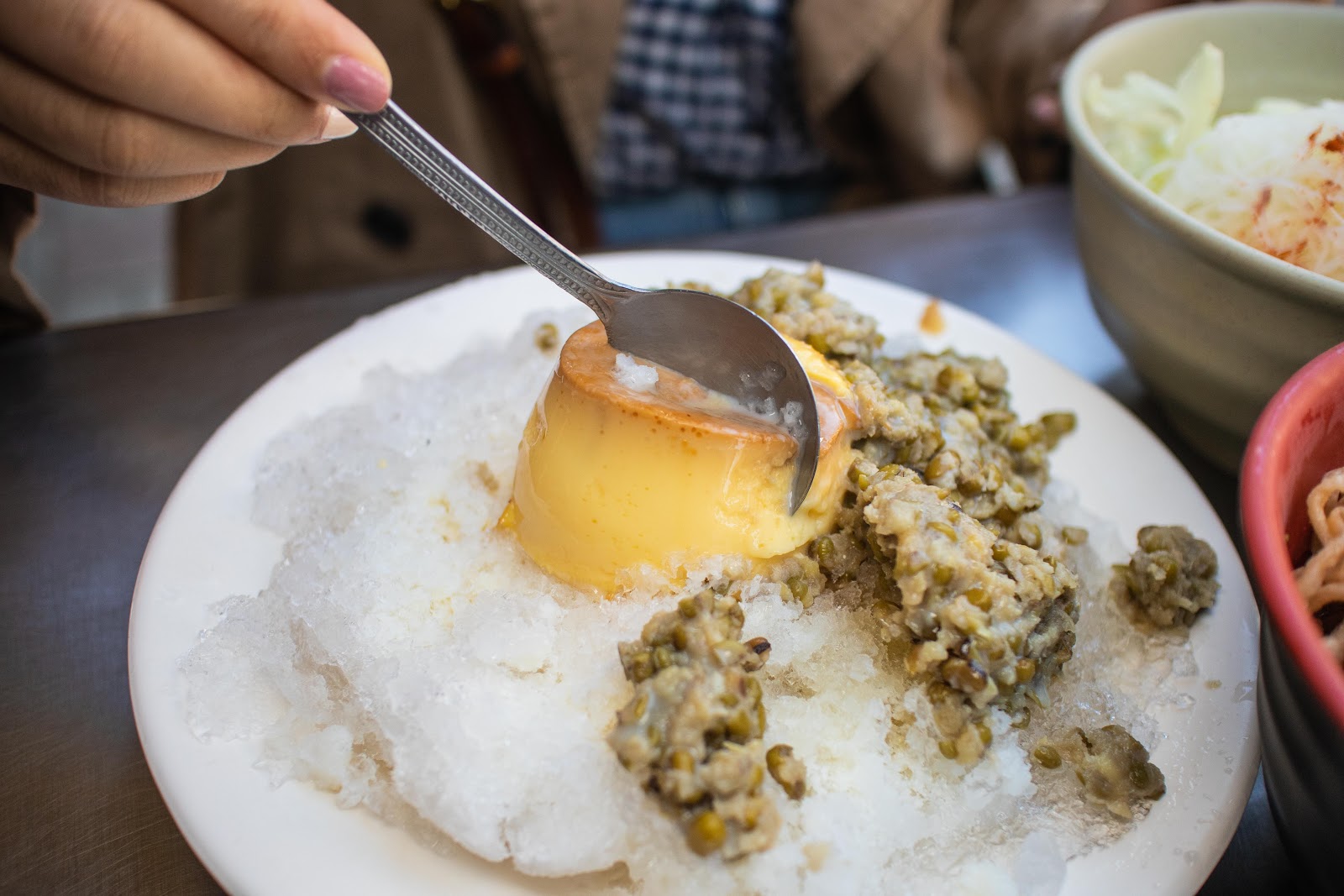 軟爛的綠豆蠻香甜的,不吃冰的女孩可以選擇綠豆豆花。