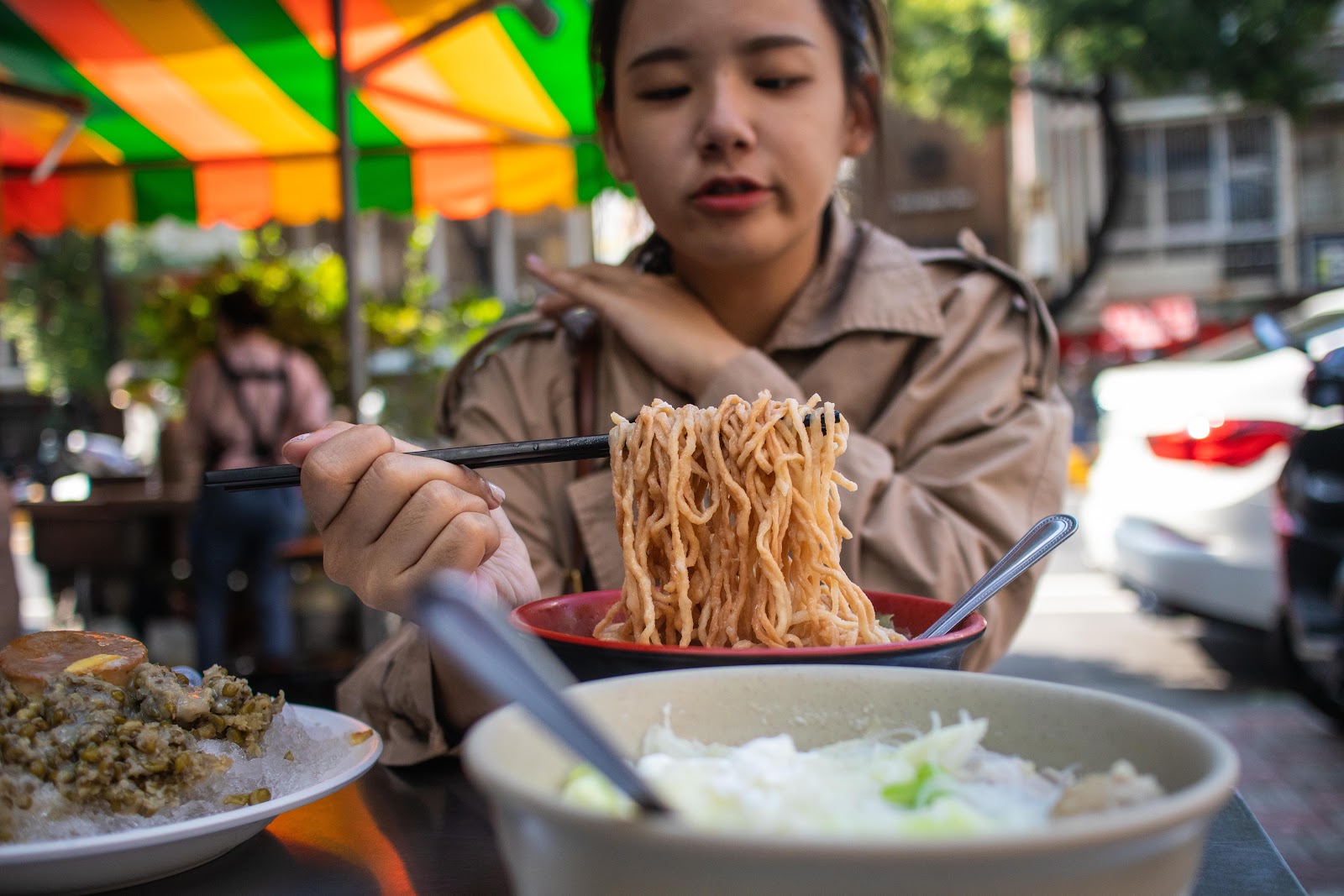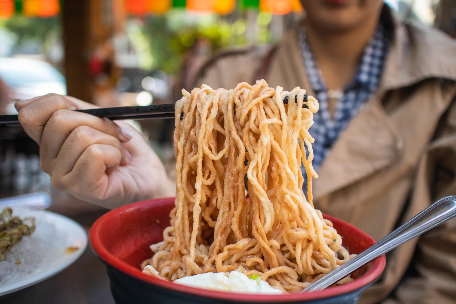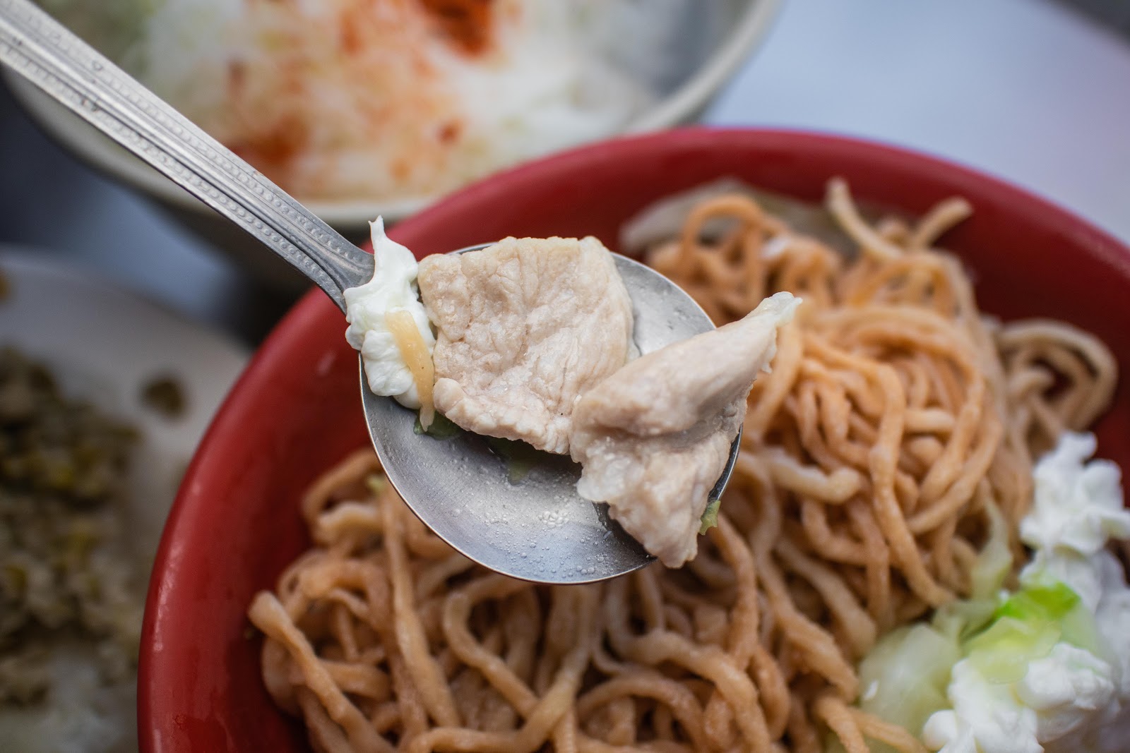 雞蛋意麵經油炸後麵體蓬鬆是許多人的心頭好,也是蠻多台南人的午餐好選擇,男生點大碗的有兩包麵,女生點小碗的應該就夠吃了。