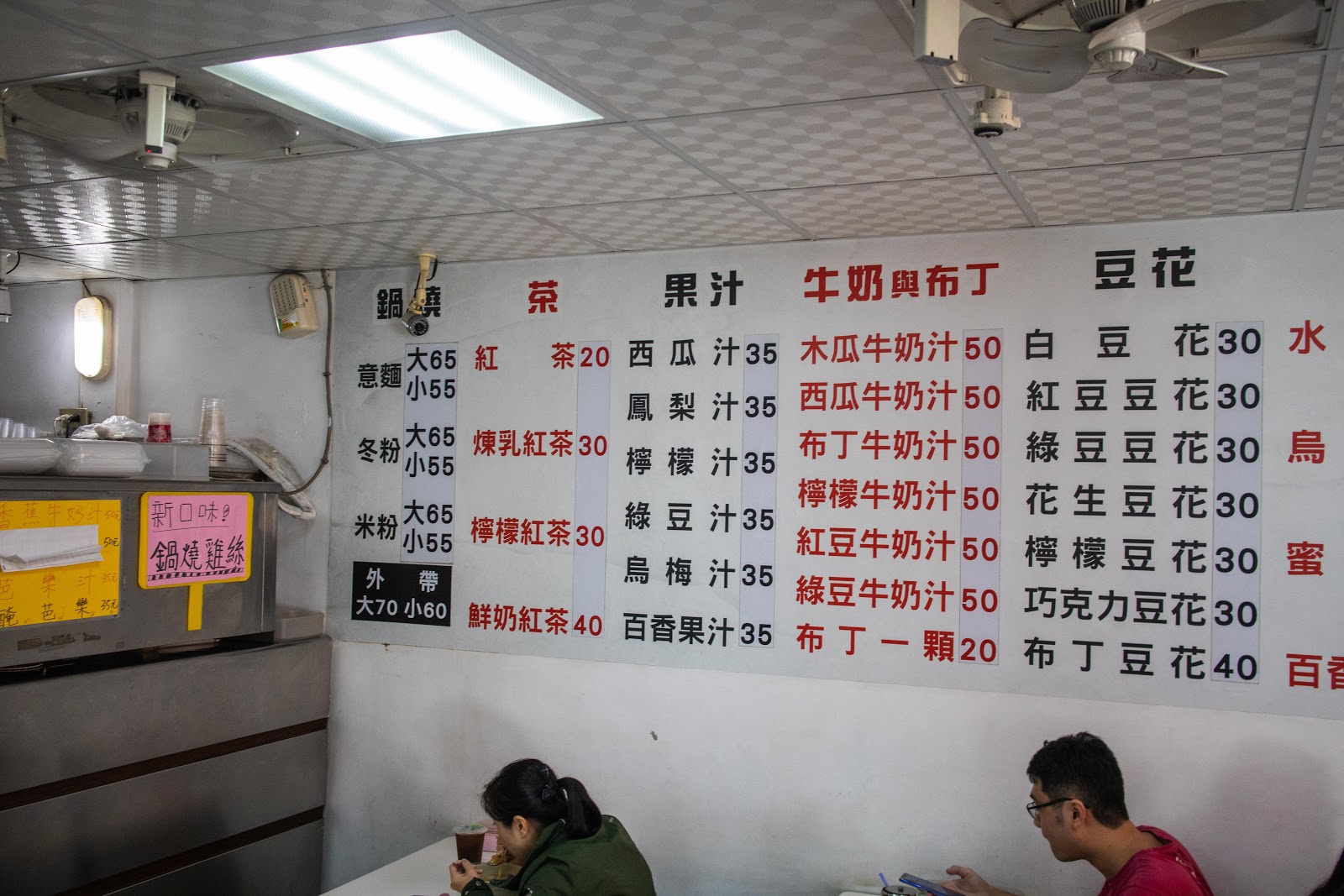大鍋燒意麵 ntd65、小鍋燒冬粉 ntd55、布丁牛乳冰+綠豆 ntd50+10